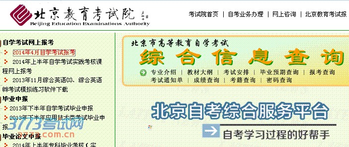 详见“自考考试”——“网上业务办理”(http://zk.bjeea.cn),点击“2014年4月自学考试网上报考”进入报考系统。