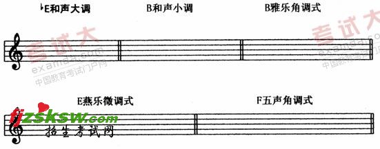 六、分析下列旋律的调式(本大题共3小题,每小题5分,共15分)