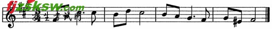 1.用按照音程的移调方法,将下列旋律为C调乐器记谱。