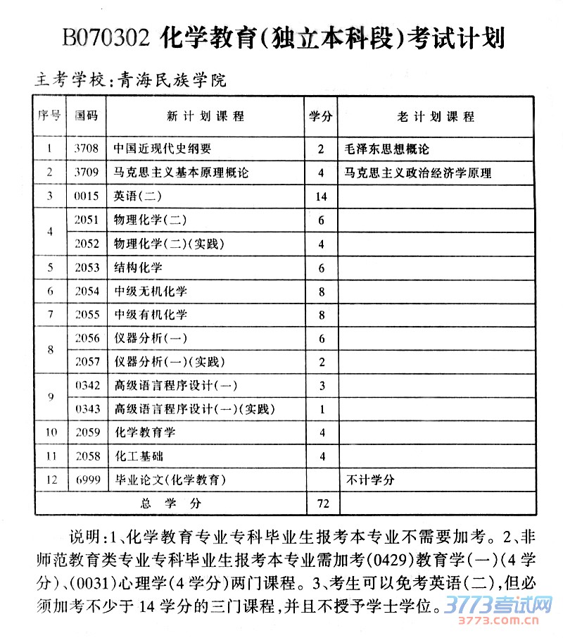 [图文]青海2015年自考化学教育(独立本科段)考试计划