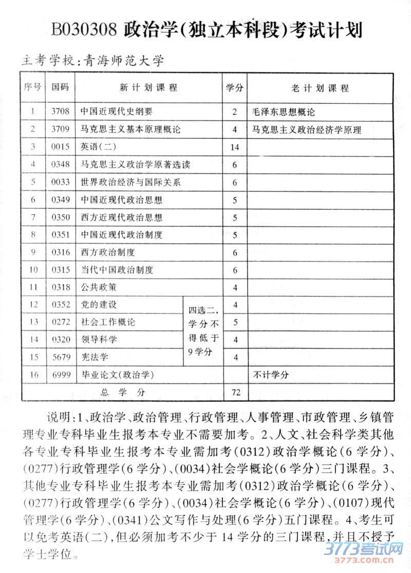 [组图]青海2015年自考政治学专业(独立本科段)考试计划