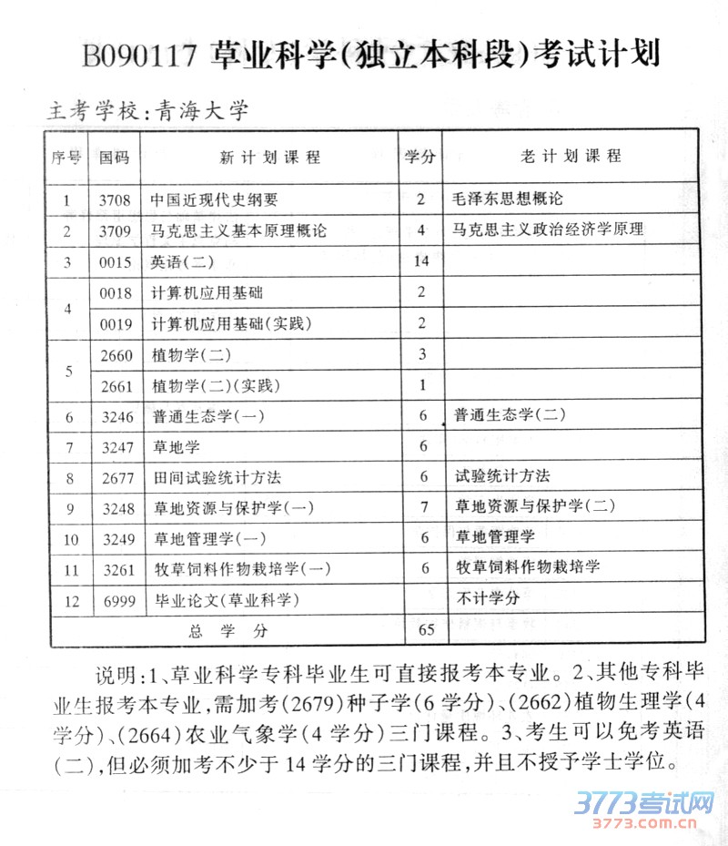 [图文]青海2015年自考草业科学(独立本科段)考试计划