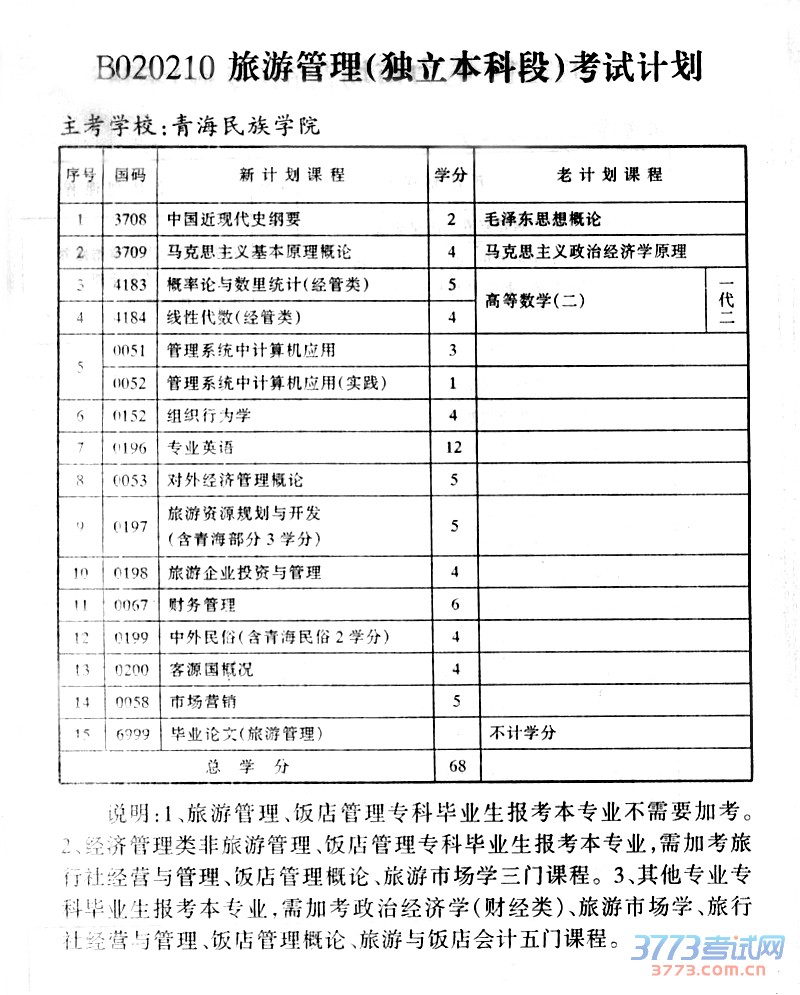 [图文]青海2015年自考旅游管理(独立本科段)考试计划