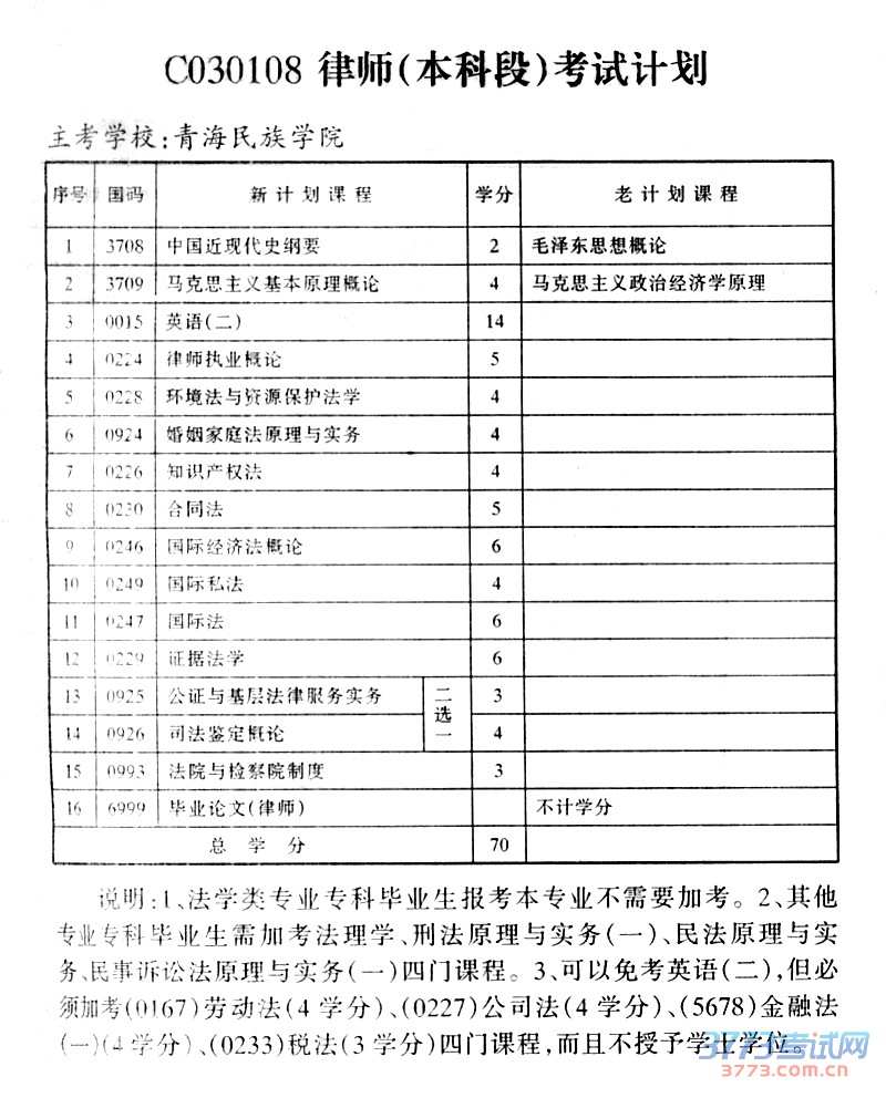 [图文]青海2015年自考律师(本科段)考试计划