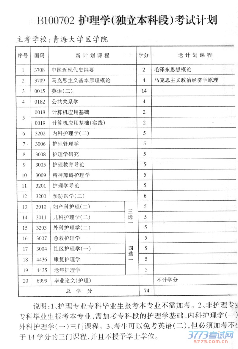 [图文]青海2015年自考护理学(独立本科段)考试计划