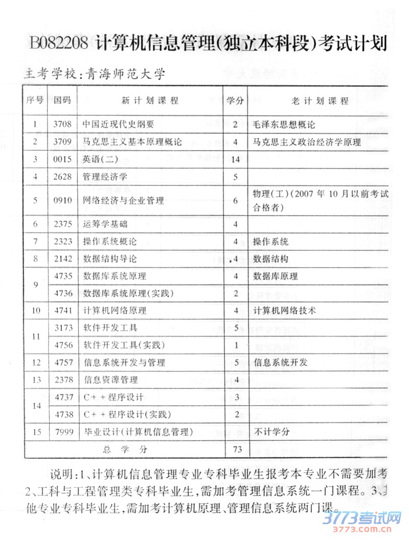 [图文]青海2015年自考计算机信息管理(独立本科段)考试计划
