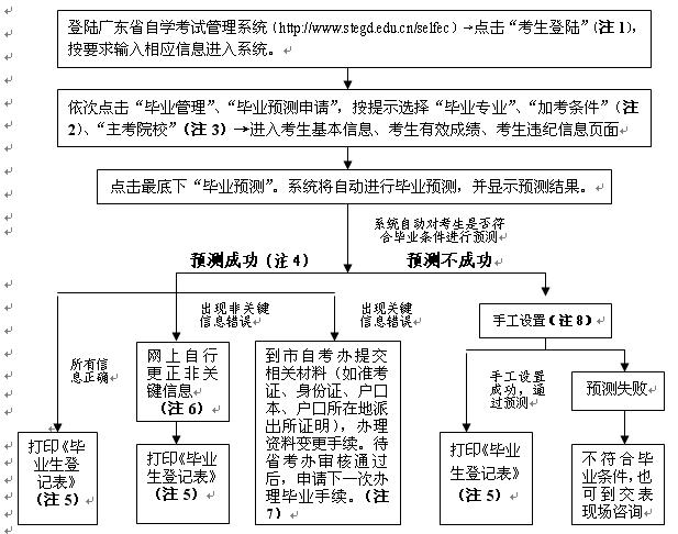 注8:手工设置方法:当毕业预测不成功,而考生认为手工顶替可以毕业,可在毕业预测结果页面点击“手工设置毕业”,依次设置必考课、选考课和加考课,如果通过毕业预测,可以提出毕业申请。