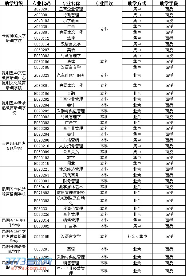 根据全国考办《关于做好2013年度高等教育自学考试社会助学组织信息公告的通知》(考委办函〔2014〕13号)的要求,现将云南省登记注册合格的自考助学组织相关信息公告如下: