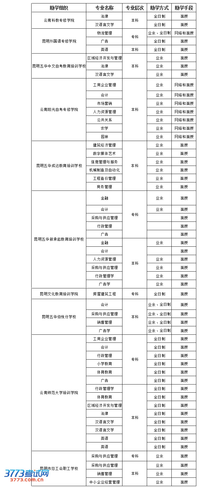 [图文]2012年云南自考社会助学组织信息公告