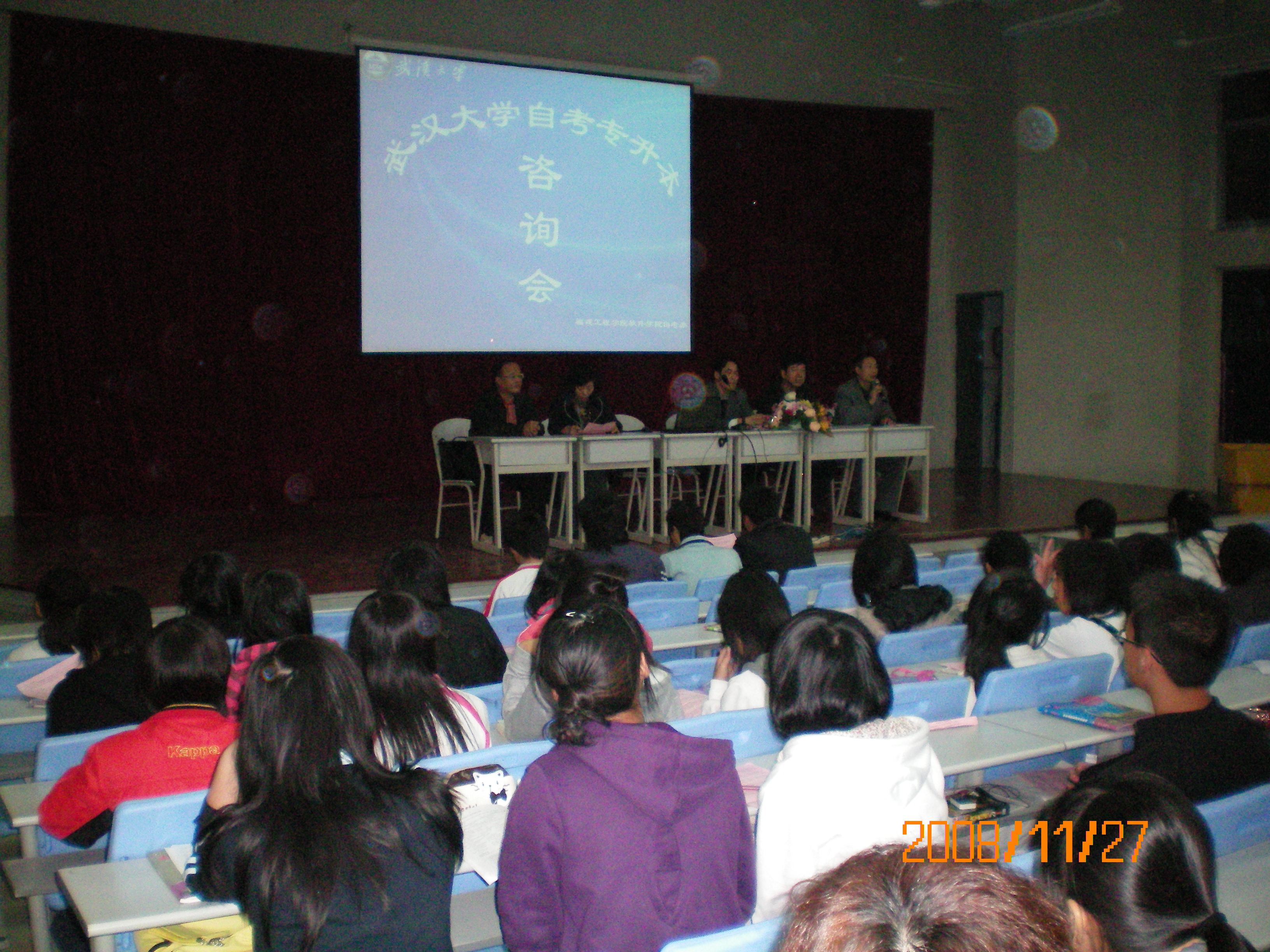 指出:选择自学考试,既要有坚定不移的信念,还要有百折不挠的毅力。只要正确对待,认真学习,弄通弄懂大纲教材知识点,不投机取巧,通过并不难。接着,又以原福建省委书记项南同志为自学考试亲笔撰写的短文鼓励学生,并赠读人生格言与大家共勉。会上,福州市考办主任林志成对武汉大学在我省开考的自学考试专业进行了详尽介绍,还强调了学生报考应注意的事宜,并对学生们提出几点要求和期望。助学点的主要负责人陈小平老师等也分别在会上做了指导性发言,并就学生们普遍关心的问题进行解答。咨询会引起了广泛的共鸣,听讲的学生们不时报以热烈的掌声。当晚咨询会共举行了2场,场场爆满,听讲学生达数百人之多。会上,还向学生们分发了自学考试招生简章和宣传材料。