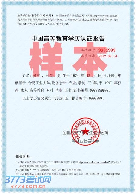 根据教育部的要求,从2013年12月1日起,凡在我省申请自学考试本科段报考资格审核的考生,必须提供原学历的《教育部学历证书电子注册备案表》(样表见附件1)或《中国高等教育学历认证报告》(样表见附件2)。