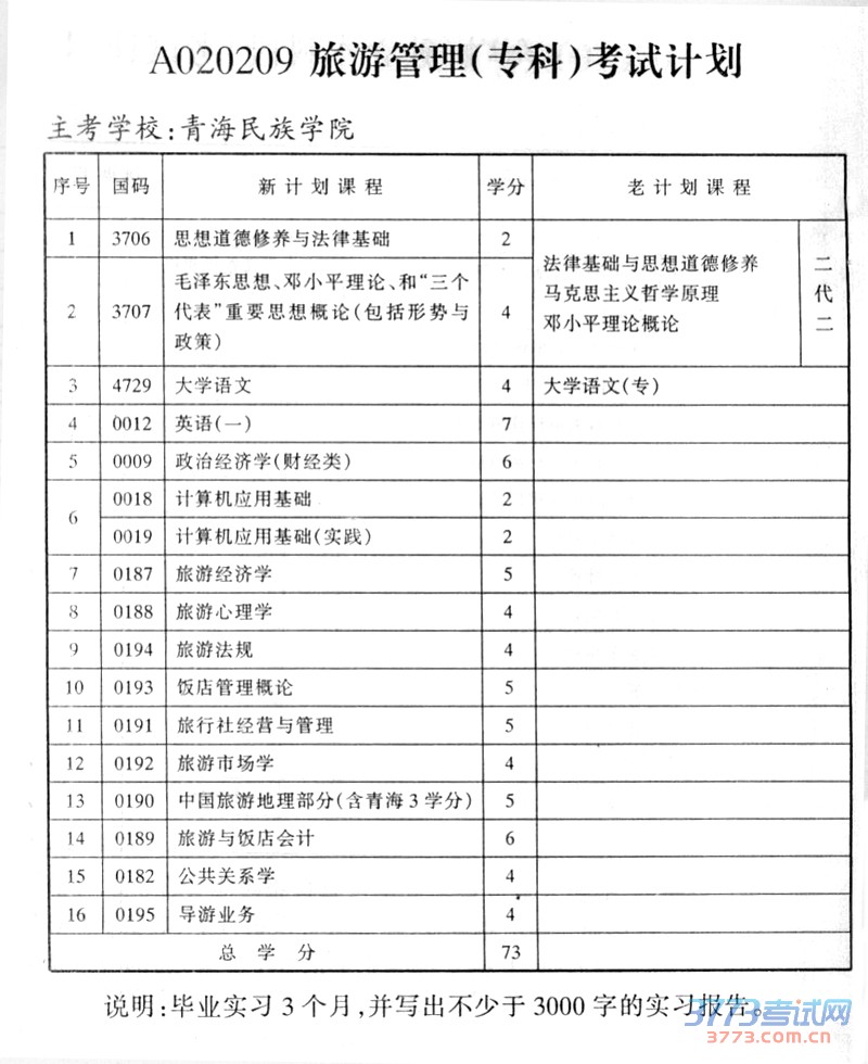 [图文]青海2015年自考旅游管理(专科)考试计划