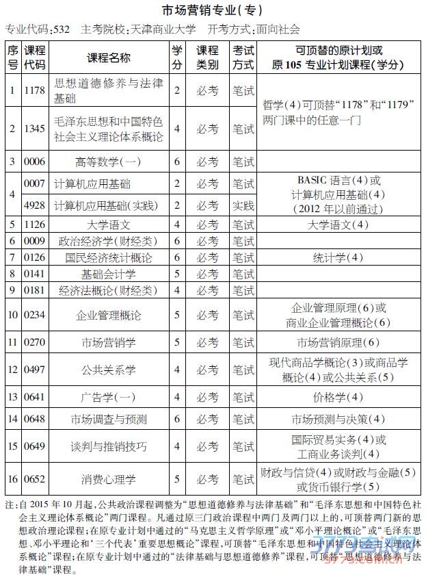 [图文]天津2016年自考市场营销专业(专科)考试计划