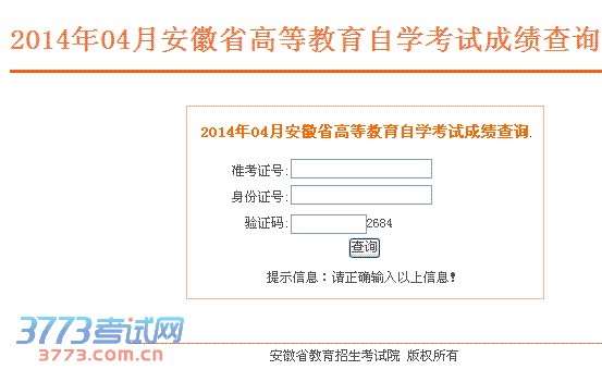 [图文]2014年4月安徽自学考试成绩查询入口