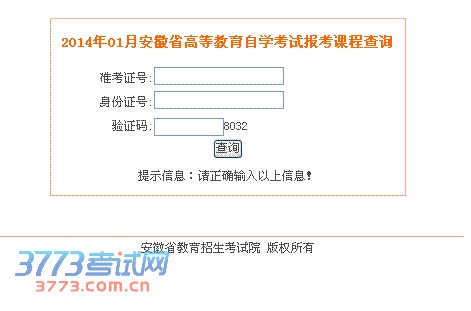 2014年01月安徽省高等教育自学考试报考课程查询 准考证号:身份证号:验证码:8032