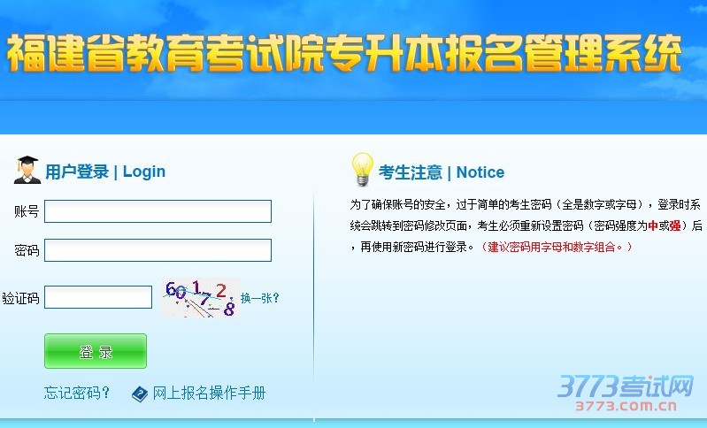 为了确保账号的安全,过于简单的考生密码(全是数字或字母),登录时系统会跳转到密码修改页面,考生必须重新设置密码(密码强度为中或强)后,再使用新密码进行登录。(建议密码用字母和数字组合。)