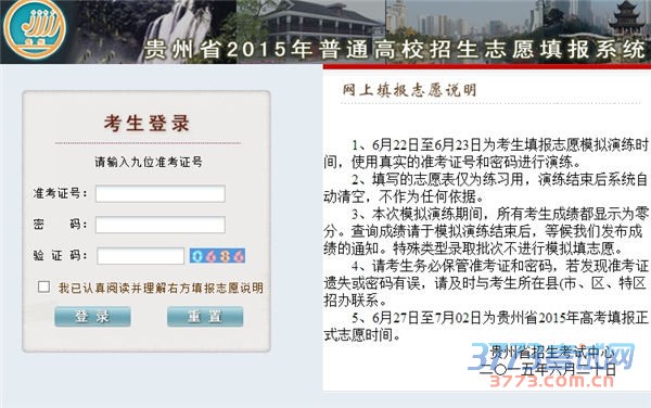贵州省2015年普通高等教育专科升本科志愿填报时间为6月27日8:00至6月28日12:00。超过规定时间,系统将自动关闭。