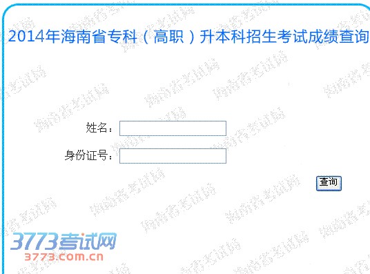 2014年我省专科(高职)升本科招生考试评卷及分数统计工作已顺利结束,现将成绩上网供考生查询。凡参加2014年海南省专科(高职)升本科招生考试的考生, 通过点击本页面下方的登录窗口登录查询系统,按提示输入自己的姓名及身份证号,就可查询自己的考试成绩。