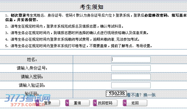 1、初次登录考生凭姓名、身份证号、密码(默认为身份证号后六位)登录系统,登录后必需修改密码、填写基本信息,并妥善保管。