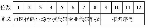 5、第9—12位为报名序号,每个学校报考不同专业的考生,其顺序号可从0001依次排起。